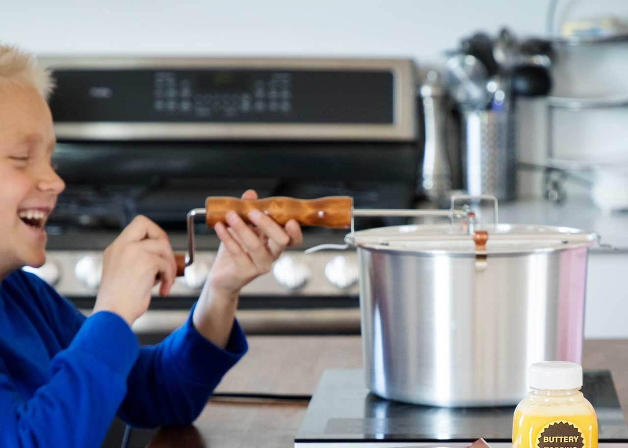 The Fort Davis 6-quart aluminum whirley-pop stovetop popper is the ultimate popcorn machine. Use any popcorn, as little as a teaspoon of any oil and in less then 3 minutes, there will be 6 quarts of delicious, mouthwatering popcorn to enjoy. Every popper comes with a "Secrets to great popcorn" guide with dozens of recipes and instructions. Cannot be used on induction stovetop. The gears on this model are metal, not plastic. Take it outside to your gas grill or camp stove to watch the stars in the sky or on your outdoor movie screen!